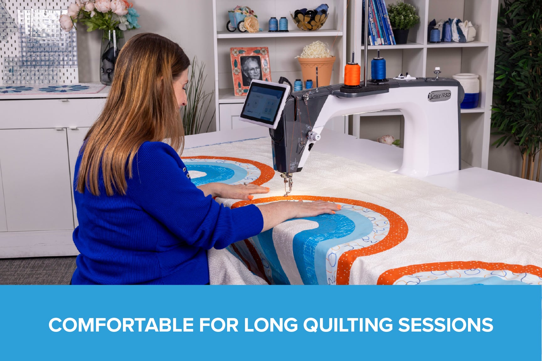 Seated comfort designed for long, focused sessions | The ergonomic sit-down table with included leaves keeps everything stable, visible, and within easy reach, so you can quilt longer without fatigue getting in the way of your creativity.