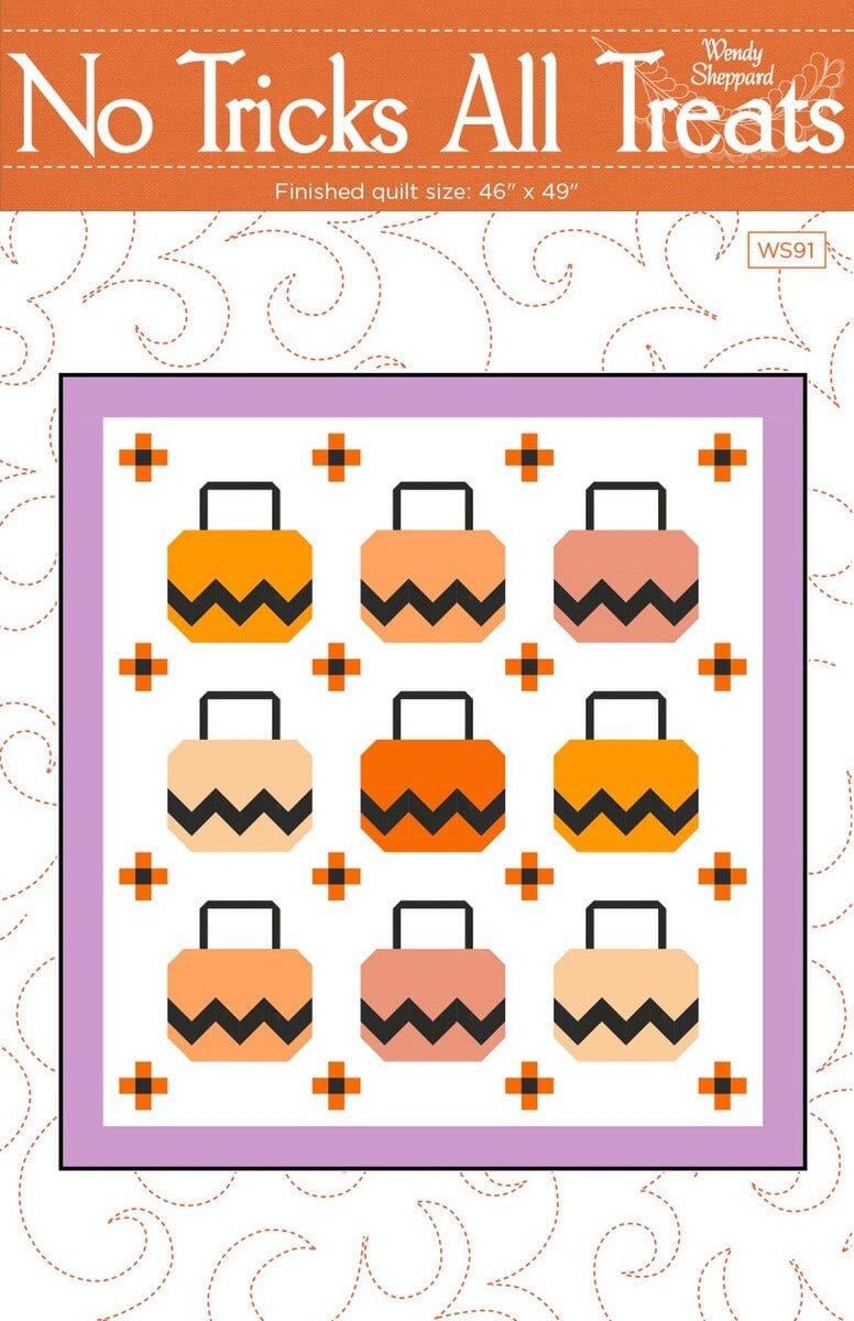 The No Tricks All Treats Quilt by Wendy Sheppard features easy-to-construct basket blocks. Finished size is 46" x 49".