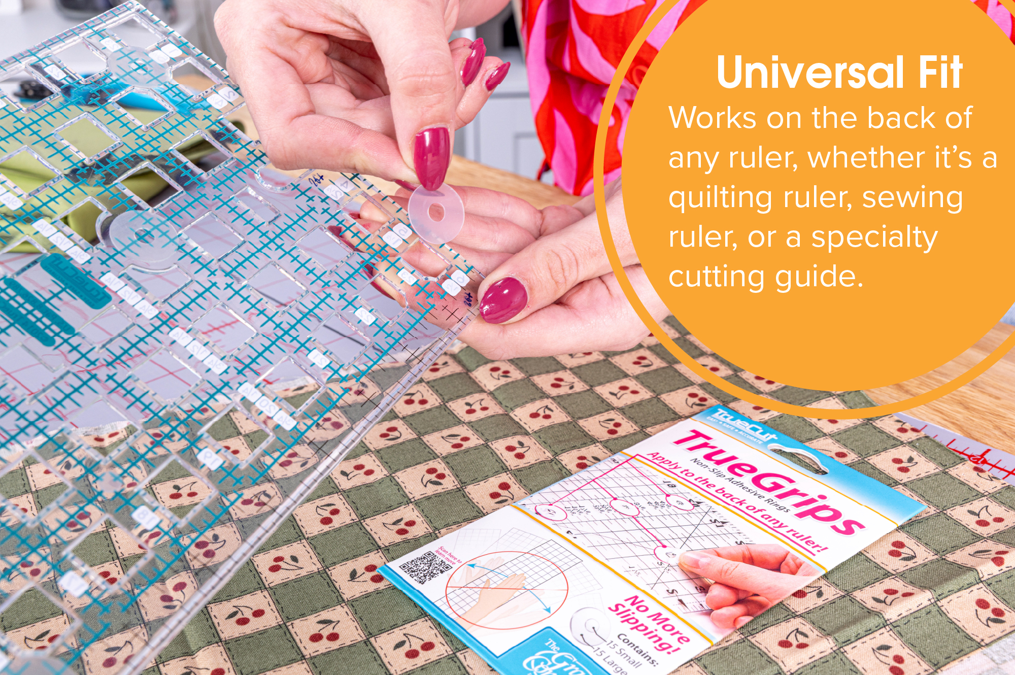 These are perfect for the long arm rulers. I haven’t put them on my cutting rulers yet but I imagine they will do great there as well. They are very thin so it doesn’t raise the ruler off the fabric too far and they are just the right amount of sticky. They stay still but aren’t hard to move.