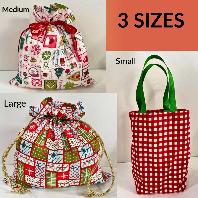 These fabric gift bags offer a beautiful alternative to traditional wrapping. They come in three different sizes: small, medium, and large. Each one is ideal for holding baked goods, books, candles, or other thoughtful gifts.