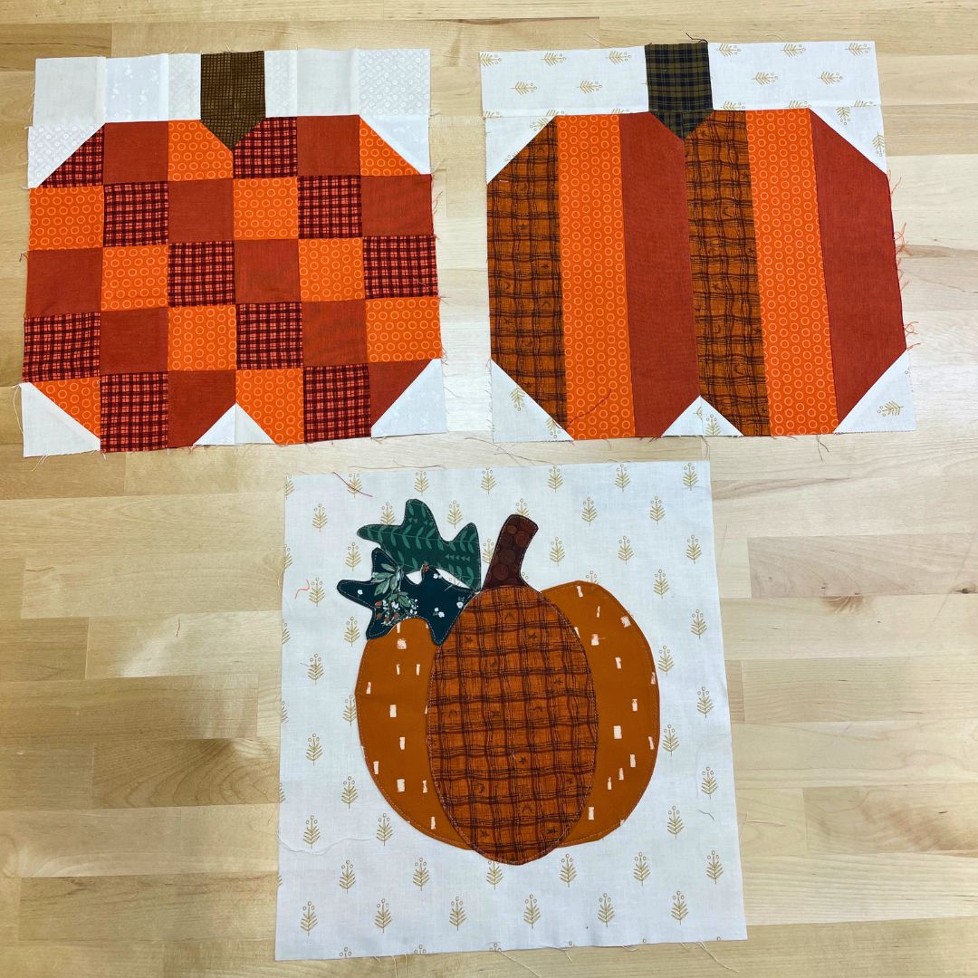 3) Pumpkin Quilt Blocks for Thanksgiving Decor